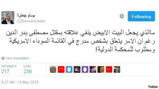 وتحت هاشتاغ #مين_قتل_بدر_الدين، تساءل نشطاء عن قدرة المعارضة السورية المسلحة تنفيذ عملية في دمشق التي تخضع لسيطرة النظام السوري وحلفاؤه.