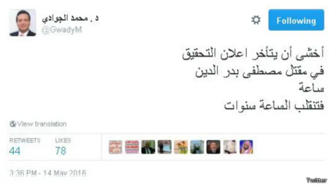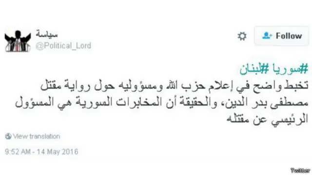 مازال مقتل القيادي البارز في حزب الله، مصطفى بدر الدين، يتصدر تعليقات مستخدمي مواقع التواصل الاجتماعي في لبنان.