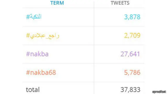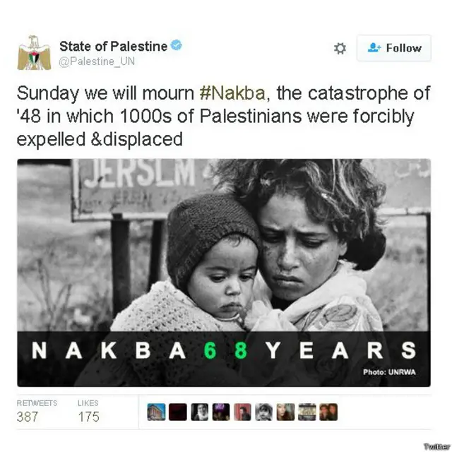 أحيا نشطاء فلسطينيون الذكرى 68 لما يعرف بنكبة 1948، من خلال تدشين مجموعة هاشتاغات كان أبرزها #nakba، و هاشتاغ #النكبة.