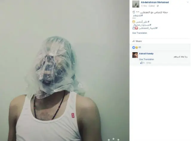ونشر المغردون صورا لأشخاص يضعون على رؤوسهم أكياسا بلاستيكية، كخطوة رمزية، للتعبير عن تعاطفهم مع المساجين الذين وصفوهم بـ "المعتقلين السياسين".