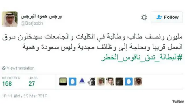 #البطالة_تدق_ناقوس_الخطر، كان عنوان لهاشتاغ آخر أطلقه سعوديون ليعبروا فيه عن خوفهم من البطالة التي بدأت تنتشر في البلاد. كما حاول بعضهم من خلال الهشتاغ البحث في أسباب الظاهرة ، فيما انبرى آخرون في اقتراح حلول للحد منها.