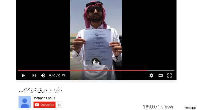 وأثار المقطع ردود فعل واسعة على تويتر، حيث أطلق المعلقون على المقطع هاشتاغ #طبيب_سعودي_يحرق_شهادته_الجامعية"، رصدوا خلاله معاناة خريجي الجامعات وارتفاع نسب البطالة في البلاد.