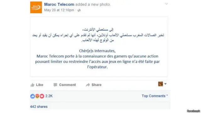ولم يمر وقت طويل حتى نفت شركة اتصالات المغرب وجود "أي حظر لهذا النوع من الخدمات" مشيرة بأن الأمر يتعلق بمشكل تقني مؤقت."