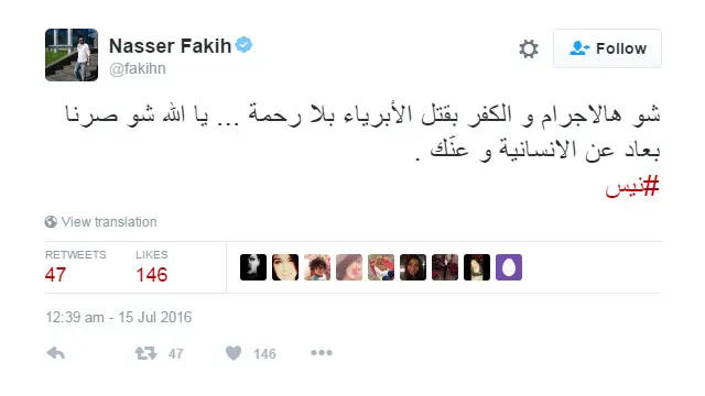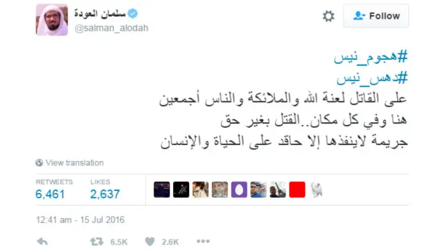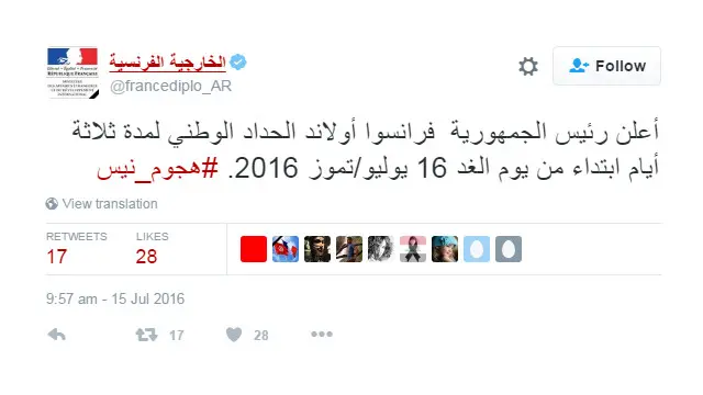 أدانة واسعة على تويتر لهجمات نيس