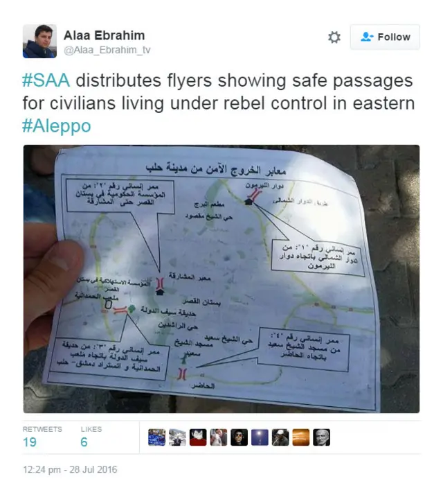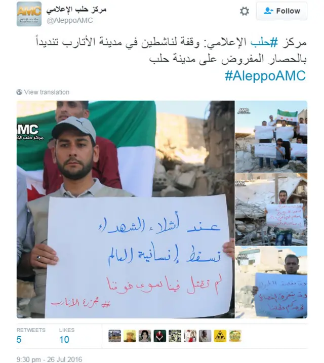 وفي رد على كلام النشطاء، قالت روسيا إنها تعمل مع الجيش السوري لفتح ممرات آمنة تسمح بخروج المدنيين من مدينة حلب المحاصرة.