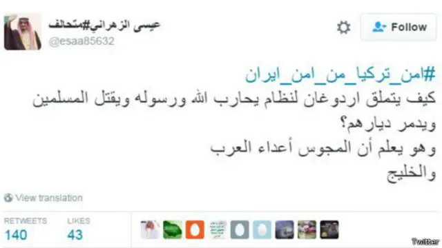 موضوع آخر شغل مواقع التواصل الاجتماعي وهو الاتفاق بين تركيا وايران للتعاون في سوريا. واستخدم المغردون هاشتاغ #امن_تركيا_من_امن_ايرانالذي ظهر في 17.6 ألف تغريدة منذ مساء الجمعة وحتى صباح السبت.