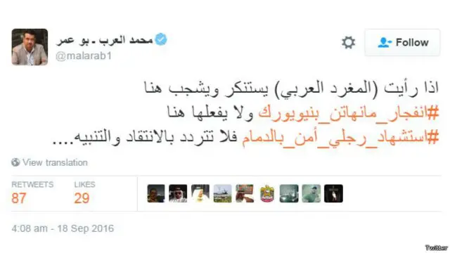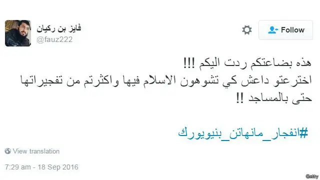 انفجار مانهاتن استحوذ أيضاً على اهتمام مستخدمي تويتر في العالم العربي، خاصة السعودية ولبنان والكويت.
