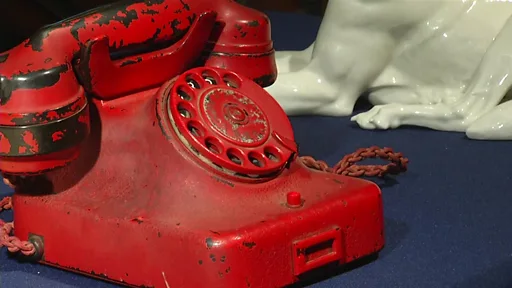 وعُثر على الهاتف، وهو أحمر اللون ونقش عليه اسم هتلر، في القبو الذي كان يتحصن به في برلين عام 1945.