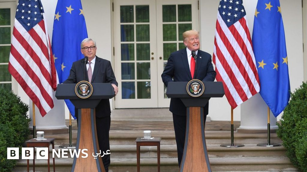 وقال ترامب إن المحادثات ستحل كلا من أزمة الرسوم الجمركية الكبيرة التي فرضتها الولايات المتحدة على واردات الصلب والألومنيوم من الاتحاد الأوروبي والرسوم التي فرضتها أوروبا على بضائع أمريكية ردا على تلك الخطوة.