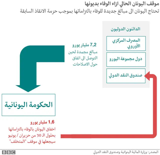 وفي حال تعذر التوصل الى اتفاق في هذا الاجتماع، تخاطر اليونان بالتخلف عن سداد مبلغ 1,6 مليار يورو نهاية الشهر الحالي.