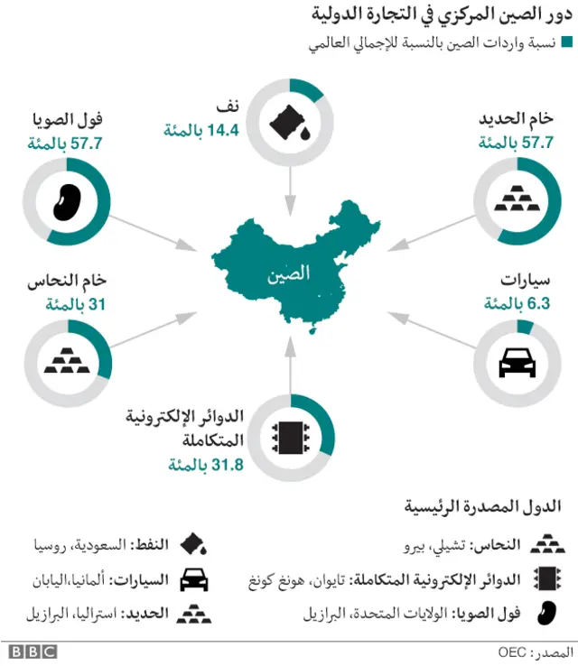 وأدى النمو المتواصل للأسواق الصينية خلال الـ 30 عاما الماضية إلى دفع الصين لاستيراد الكثير من المواد الخام لاستخدامها في الصناعة، كما جعلها مستوردا للسلع الفاخرة من بلدان العالم الأخرى.