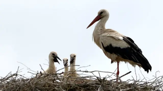 ويتجمع عشرات الآلاف من طيور اللقلق الأبيض ليبنوا أعشاشهم في هذه المنطقة السهلية كل صيف، وذلك قبل توجههم إلى الجنوب حيث المناخات الأكثر دفأ.