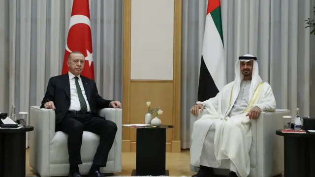 ولم يتأخر الرئيس أردوغان في زيارة أبو ظبي بداية الأسبوع الجاري حيث وقع مع محمد بن زايد آل نهيان اثنتي عشرة اتفاقية تشمل مجالات الاستثمار والدفاع والنقل والصحة والزراعة إضافة الى مذكرة تفاهم بشأن التعاون في مجالات النقل البري والبحري. وهكذا تجاوز البلدان توتراتهما القديمة بسبب تداعيات الربيع العربي واختلافهما حول الصراع في ليبيا.