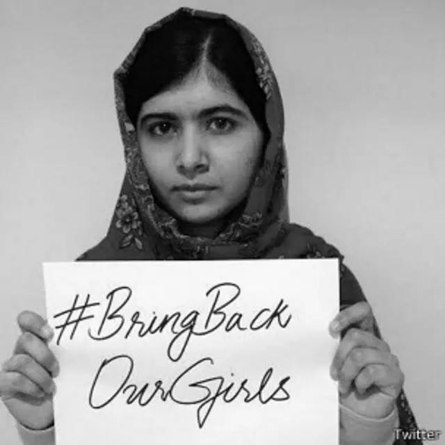 وانضمت الى الحملة ايضا الناشطة الباكستانية في مجال تعليم الفتيات ملالا يوسف والتي غيرت صور صفحتها على تويتر كمظهر من التضامن مع الحملة.