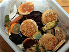Hello and welcome to BBC Xtra English! British author Tristram Stuart has just completed an event to raise awareness about the amount of food wasted in Britain. 5'000 free meals were given away for free in central London, made from six tonnes of fruit and vegetables donated by farmers in the UK. The fruit and vegetables were rejected by supermarkets because they deemed them to be "mis-shapen". Instead of throwing them away, they were turned into soups, smoothies and curries for people to eat or drink during their lunch break. Tristram Stuart told the BBC that he hoped fewer people would throw away fresh products as a result of his campaign. "The aim of our lunchtime feast is to highlight how food waste can be avoided by putting food to good use. Ie by feeding people". Wasted food is a big problem around the world. The UK government's anti-waste department WRAP says that about 8.3 million tonnes of food is thrown away each year, which is enough to fill 4,700 Olympic sized swimming pools. In America and Europe, it is estimated that 30 to 50 percent of food is being wasted. One of the main reasons for this is that supermarkets do not stock fruit and vegetables that are oddly shaped. ."لاستخدام هذا الملف لابد من تشغيل برنامج النصوص "جافا"، واحدث الاصدارات من برنامج "فلاش بلاير يمكن التنشغيل باستخدام برنامج "ريال بلاير"، او "ويندوز ميديا بلاير ."لاستخدام هذا الملف لابد من تشغيل برنامج النصوص "جافا"، واحدث الاصدارات من برنامج "فلاش بلاير يمكن التنشغيل باستخدام برنامج "ريال بلاير"، او "ويندوز ميديا بلاير Just send it to poor countries around the world in Afirca, Asia and South Amerca. There must be a way to supply the poor countries with such wasted food. My suggestions about the amount of food wasted in Britain are: This lesson is very important for the enviroment,the consumers should not buy more than their needs and the producers should send the rejected food to the poorst people in the same city or the send those kind of foods to the poorest people in another continents,also there is another way to consume the rejected foods by sell them with less price or to make them more attractive and more usefull such as put those foods in process to produce medicines or cosmetics or another kind of ready made foods. I believe that Britsh government have far-sighted to take advantage of 8.3 million tonnes of food which is thrown away each year. I think that Britain can establish food bank to use for poor people and distributed food to them. That throwing fruits and vegetables, not only because they deemed them to be "misshapen " or people confuse sell-by-dates but the reality is the law of the capitalist system do not want to be sold a cheaper price and affect the original price and thus affect their profits. There are many needy cannot grapple to purchase and it remains on the shelves to implement the power and keep prices high for the purpose of profit, therefore they sometimes decrease the price for a specific period and prevarication. *Required Fields