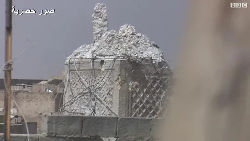 وأنحى الجيش العراقي والتحالف الدولي باللائمة في تفجير جامع النوري ومئذنته على تنظيم الدولة.