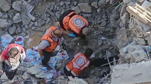 وبعد ما وصفتها وزارة الصحة في غزة بـ"المذبحة" التي تعرض لها مخيم جباليا اليوم الثلاثاء، انهمك عمال الإنقاذ في البحث عن الضحايا التي سقطت تحت وابل الغارات الإسرائيلية في خضم أحدث موجات القصف.