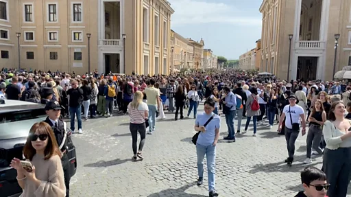 ولوّح البابا، الذي كان على كرسي متحرك، للحشود التي كانت تهتف له في ساحة القديس بطرس.