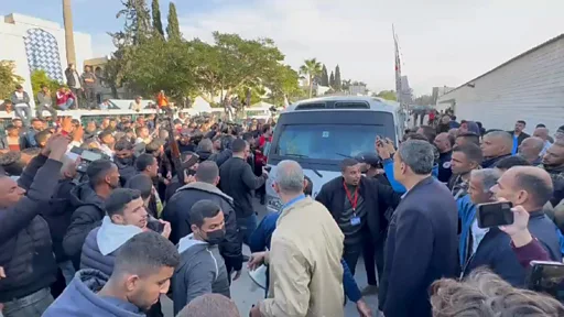 وصلت أكثر من عشر مركبات مُطلقة صفارات الإنذار ترافق حافلات تحمل شعار الصليب الأحمر إلى رام الله في الضفة الغربية.