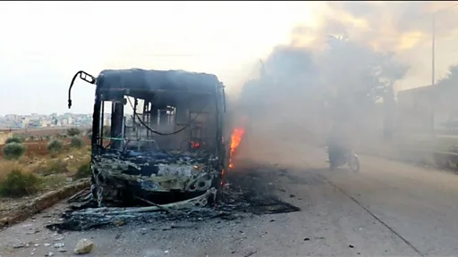وأفاد المرصد السوري لحقوق الإنسان، ومقره بريطانيا، بأن ست حافلات تعرضت لهجمات وأُحرقت وهي في الطريق الفوعة وكفرايا.