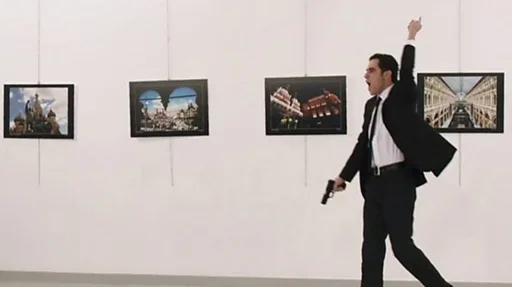 صرخ مولود مرت الطن طاش عبارات بعربية ركيكة بعد إطلاقه النار على السفير الروسي في تركيا، أندريه كارلوف.