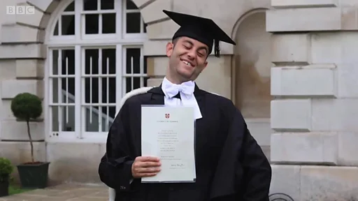 ويقول: "إذا حصلت على الدرجة الأولى في القانون من جامعة كامبرديدج، فسيكون ذلك مفيدا طوال حياتك. لكن، إذا كنت أعمى ومهاجرا مسلما تعيش في لندن حاليا، فيتعين عليك إنجاز الكثير من الأشياء. الرحلة قد بدأت للتو".