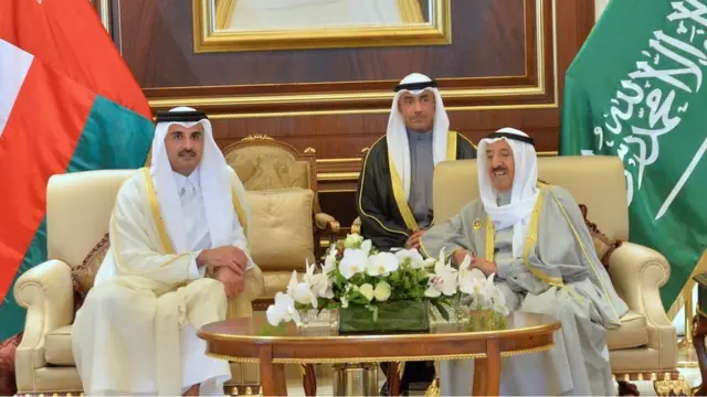 والتقى الوزير القطري نظراءه في السعودية، والإمارات، والكويت، وعمان، والبحرين الاثنين في اجتماع وزراء خارجية دول مجلس التعاون في قصر بيان في الكويت للإعداد للقمة.