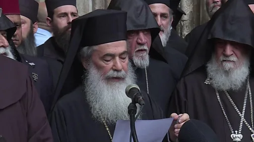 وأعلن البطريرك ثيوفيلوس الثالث، بطريرك القدس وسائر أعمال فلسطين و الأردن، هذا الإجراء الاحتجاجي غير مسبوق، خلال مؤتمر صحفي في القدس، باسم جميع بطاركة و رؤوساء كنائس القدس، مشيرا أنه جاء احتجاجاً على الممارسات الإسرائيلية بحق الكنائس حسب قوله.