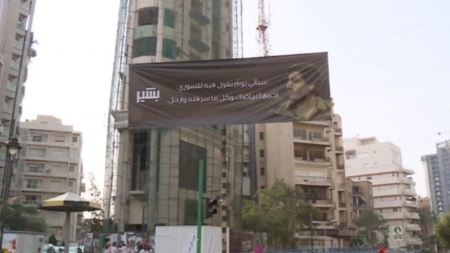 وقال الجميَل الابن إن تعليق اللافتات جاء في ذكرى انسحاب الجيش السوري من لبنان في نيسان/ أبريل من عام ٢٠٠٥.