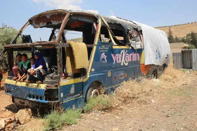 ربما كانت هذه الحافلة يوماً ما فعلا "الممتازة" كما كتب عليها صاحبها الذي هجرها في أحد حقول الزيتون ببلدة أرمناز بريف إدلب الشمالي، لكنها بالتأكيد اليوم ليست كذلك، فقد أزيلت جميع مقاعدها.