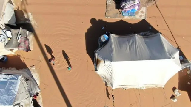 وقالت منظمات إغاثية إن المخيمات تحولت إلى "بحيرات" في أكثر من 87 موقعا شمال إدلب وغربي محافظة حلب وهي المناطق التي تسيطر عليها قوات المعارضة.