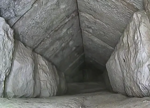 وتم الكشف عن هذا الممر لأول مرة في عام 2016 باستخدام تقنية تصوير تُسمى ميوغرافي، والتي تستشعر تغيرات الكثافة داخل تركيبات الصخور الضخمة.