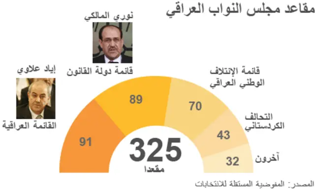 وظل العراق بدون حكومة منذ إجراء الانتخابات التشريعية يوم 7 مارس/آيار الماضي في ظل تقارب النتائج بين قائمة دولة القانون بزعامة رئيس الوزراء المنتهية ولايته، نوري المالكي وزعيم القائمة العراقية، إياد علاوي.