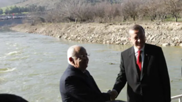 رئيسا الحكومتين التركية والسورية يضعان الحجر الاساس "لسد الصداقة"