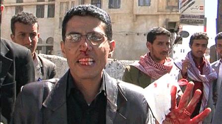 وقد تعرض مراسلنا في اليمن عبد الله غراب للضرب على يد قوات امن بثياب مدنية.