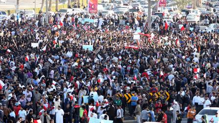 وكان الالاف من المحتجين المعارضين للحكومة احتلوا وسط العاصمة البحرينية المنامة بعد مقتل اثنين من المحتجين في مواجهات مع قوات الأمن خلال الأيام الماضية، وذلك لليوم الثالث على التوالي.