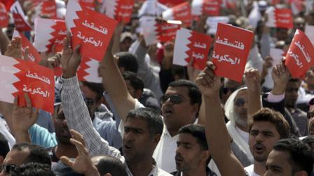 تظاهر الآلاف الأحد في المنامة امام قصر القضيبية مقر اجتماعات الحكومة البحرينية, رافعين شعارات تطالب بإسقاطها.