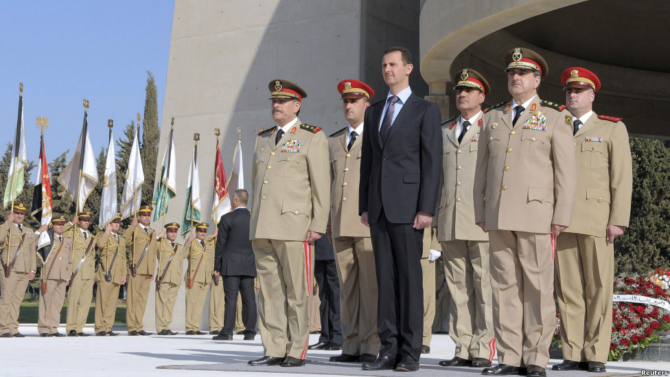 • يظهر في الصورة التي نقلتها وكالة اسوشييتدبرس عن شريط بثته وكالة الانباء السورية الرسمية (سانا) وزير الدفاع الجديد فهد جاسم الفريج الذي عينه الرئيس السوري بشار الاسد محل راجحة الذي قتل في تفجير مبنى الامن القومي بدمشق.