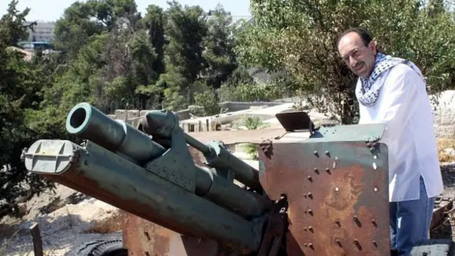 ويستخدم رجائي مدفعا صدئا يعود تاريخه إلى عام 1918 أعلى مقبرة قريبة من شارع تسوق مزدحم بالقدس الشرقية تطل على أسوار المدينة القديمة.
