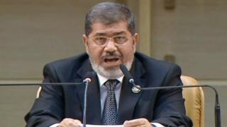 من جانبه، قال الرئيس المصري محمد مرسي في كلمته إن سوريا يحكمها "نظام قمعي فقد شرعيته."