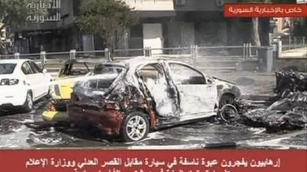 وذكر التلفزيون في نبأ عاجل أن "تفجيرا ارهابيا بسيارة وقع بين القصر العدلي ووزارة الاعلام في المزة".