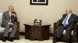 بدأ موفد الجامعة العربية والأمم المتحدة إلى سوريا الاخضر الابراهيمي مباحثات في دمشق مع وزير الخارجية السوري وليد المعلم.