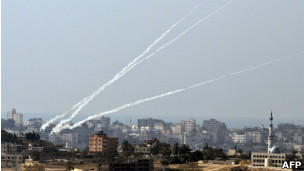 بينما أكد شهود عيان ان مسلحين فلسطينيين يواصلون اطلاق صواريخهم على بلدات اسرائيلية محاذية لقطاع غزة.