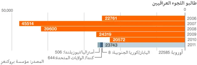 ولا يزال العراقيون يسعون بعشرات الآلاف إلى اللجوء لدول أخرى معظمها أوروبية. وقدم نحو 23 ألف عراقي طلبا للجوء خلال عام 2011.