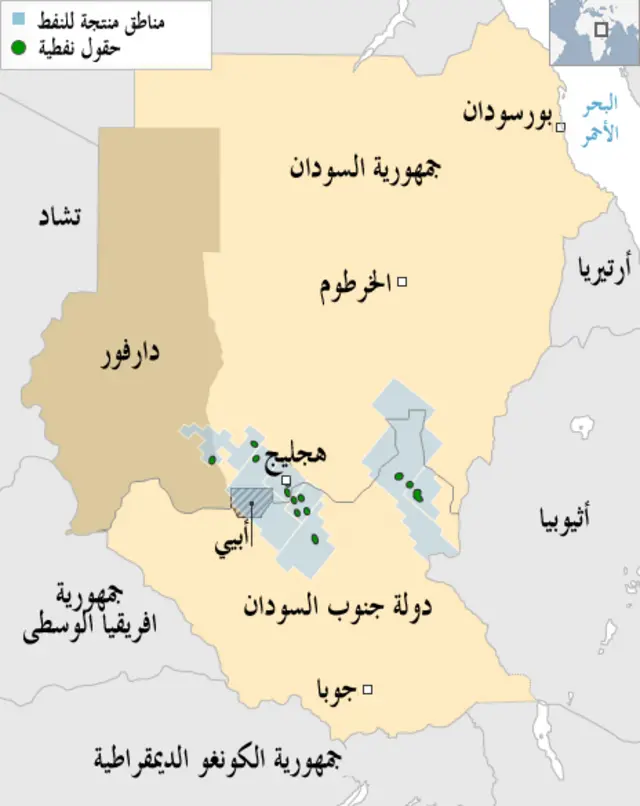 وبات نحو ثلاثة أرباع النفط المنتج من حصة جنوب السودان بعد إعلانه دولة مستقلة في عام 2011، وقد اختلف الجانبان بشأن المبالغ التي ينبغي أن يدفعها جنوب السودان مقابل تصدير نفطه عبر أنابيب نقل النفط في الاراضي السودانية.