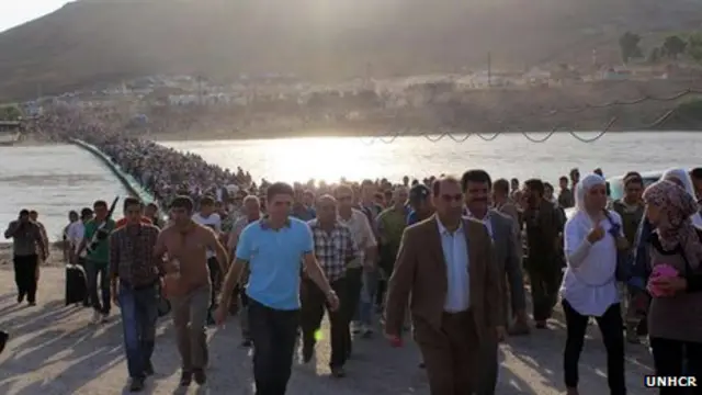ويقول مراسل بي بي سي في لبنان جيم ميور إن معظم اللاجئين الذين يتدفقون على اقليم كردستان العراق هم من سكان المحافظات السورية الشمالية، وقد سهل أمر عبورهم تشييد جسر عائم جديد عبر نهر دجلة عند فيشخابور.