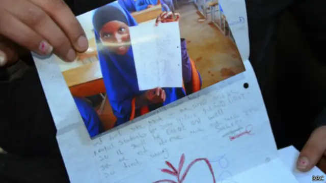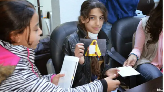 وتسلم أطفال سوريا اللاجئون الرسائل وفي كل منها صورة للشخص الذي كتبها.