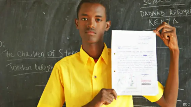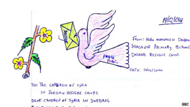 بعث أطفال صوماليون لاجئون، يعيشون في أكبر مخيم للاجئين في العالم في كينيا، برسائل تشجيع ومؤازرة وتضامن للأطفال السوريين اللاجئين الذين اضطروا أيضا إلى الفرار من بلدهم.