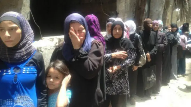 ويوجد نحو18 الف شخص محاصرين في المخيم منذ يوليو/تموز الماضي. وتقول جماعات حقوق الانسان إن أكثر من مئة شخص لقوا حتفهم جوعا.