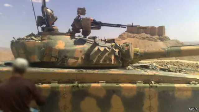 تحصنت أيضا قوات مسلحة سورية في قلعة ابن معن العربية التي تعود للعصور الوسطى والتي تطل على الموقع، وأطلقت قذائف من موقع التحكم الطبيعي وألحقت أضرارا بالموقع الأثري وأيضا بالزيتون القديم والبلح ومزارع الرمان، وتدمير سبل العيش للكثير من السكان المحليين.